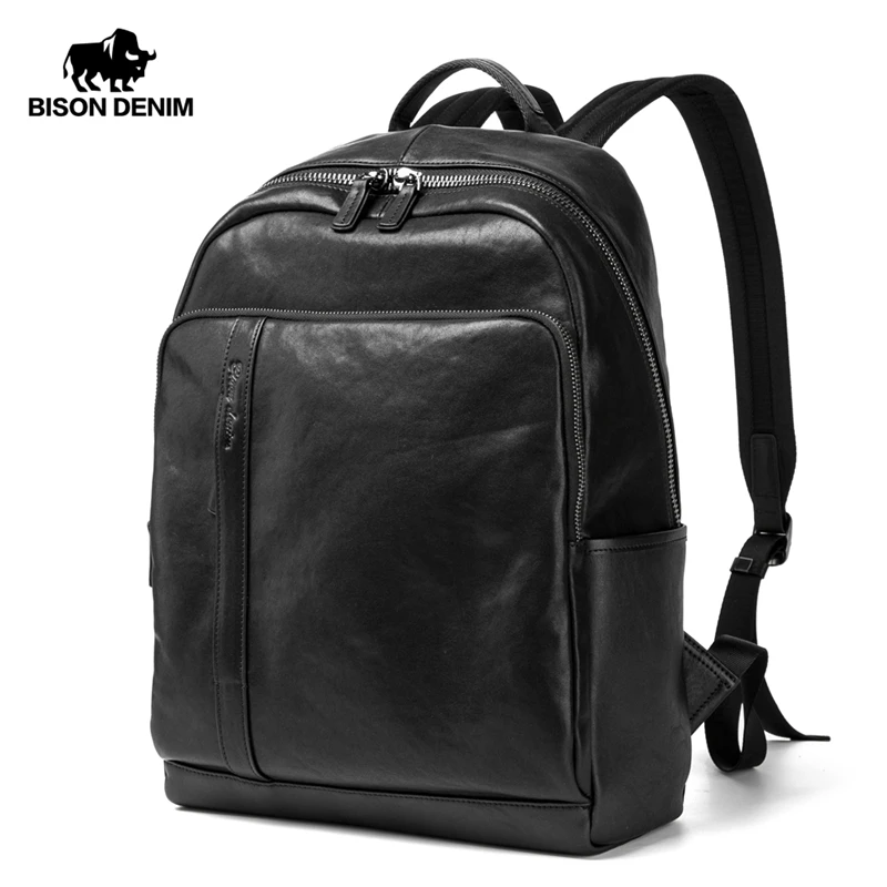 Buy BISON DENIM Genuine Leather Backpack Male 15 inches Laptop Bag Travel Men Backpack Large Capacity S