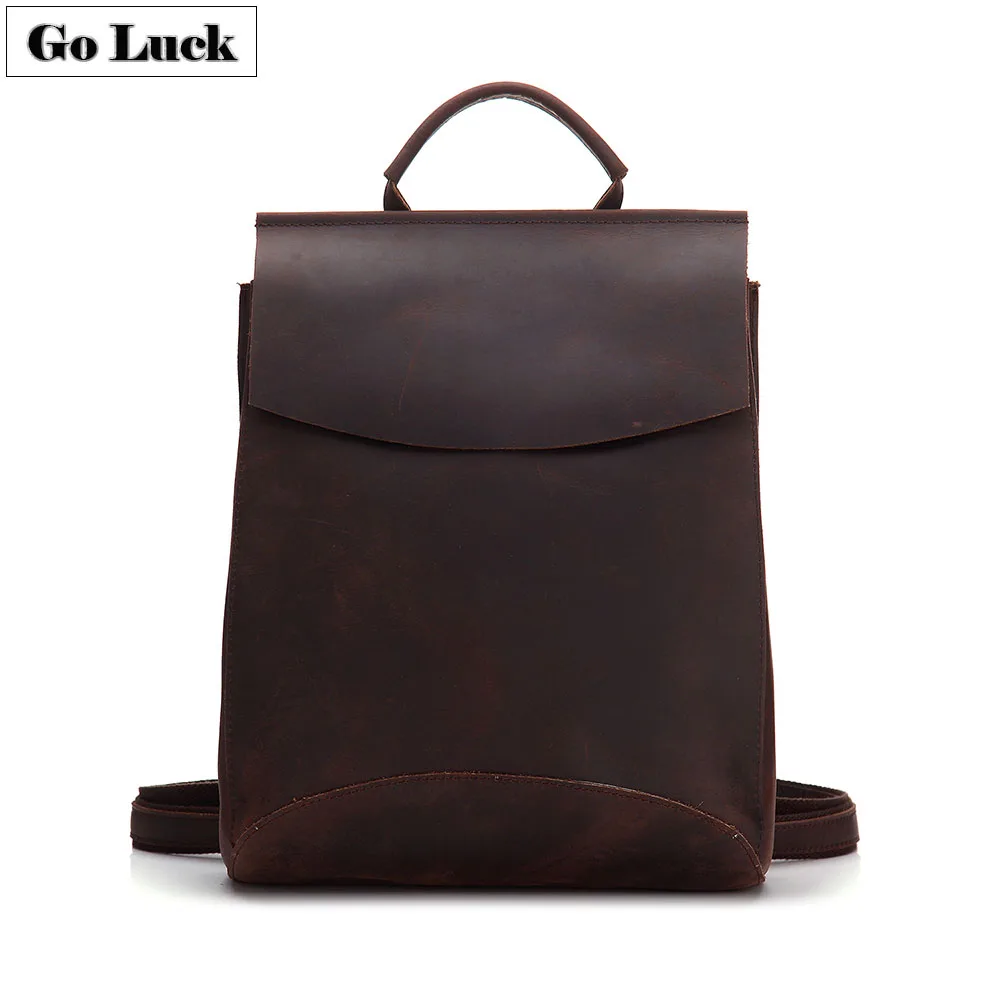 Hot Product GO-LUCK Brand New Hand-made Crazy Horse Genuine Leather Unisex Casual Backpack Men&Women Travel day