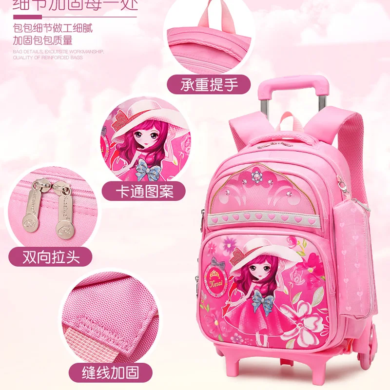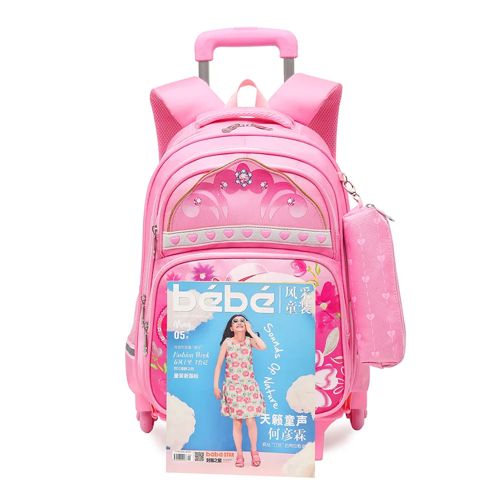 Best Cute Detachable Trolley Backpack Children school bags for Girls Bow Kids travel luggage book bag Sc