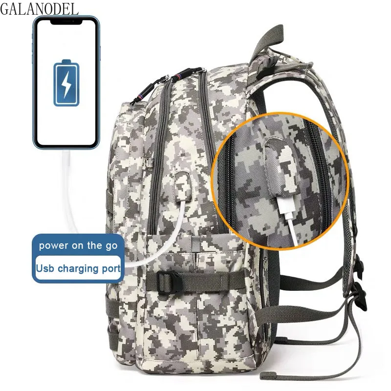 » Free Shipping Camouflage Nylon Backpack Men School Bags Large Travel Bags with Multi Pocket USB Charge Waterproof