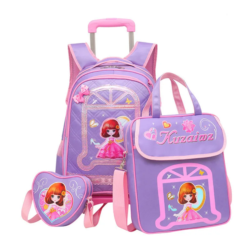 Home » backpack , hot product , travel » Promo 3PCS sets Girls Trolley Rolling Backpack Climb the stairs school bag children Detachable waterproof