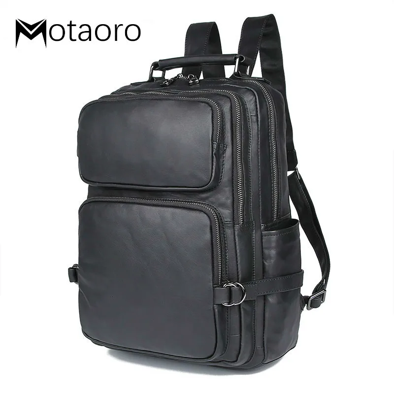 New High Quality Real Leather Laptop Bag Men Black Travel Backpacks Large Capacity Schoolbag Backpack S