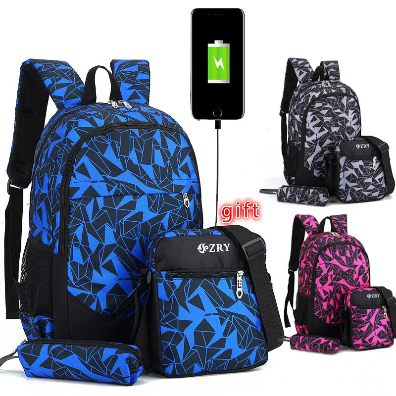 » Hot Product New Boys School Backpack Set for Teenager Children Camouflage Travel Knapsack Kids Schoolbag Girls