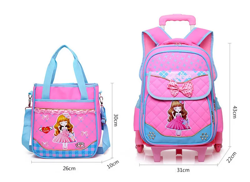Limited Fashion 2pcs Set School Backpacks 6 Wheels Children School Bags For Girls Handbag Waterproof Cute K