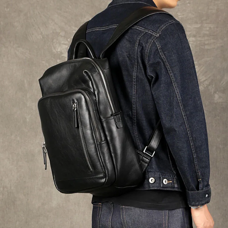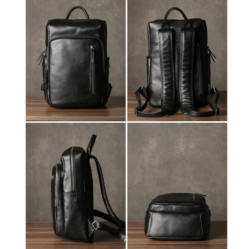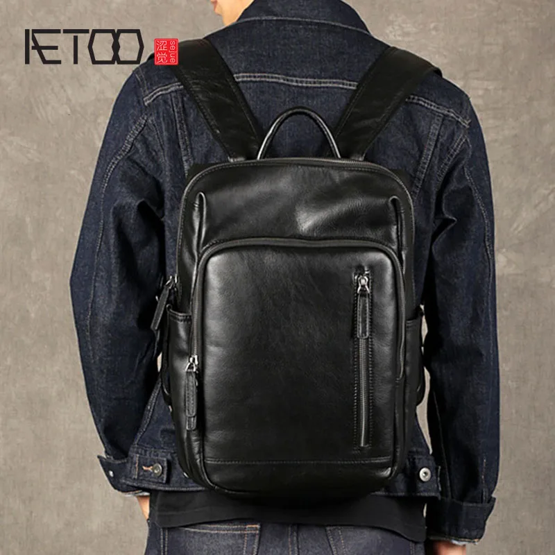 • Limited AETOO Men's Leather Backpack Fashion Leather Backpack Large Capacity Travel Bag Black Backpack Casu