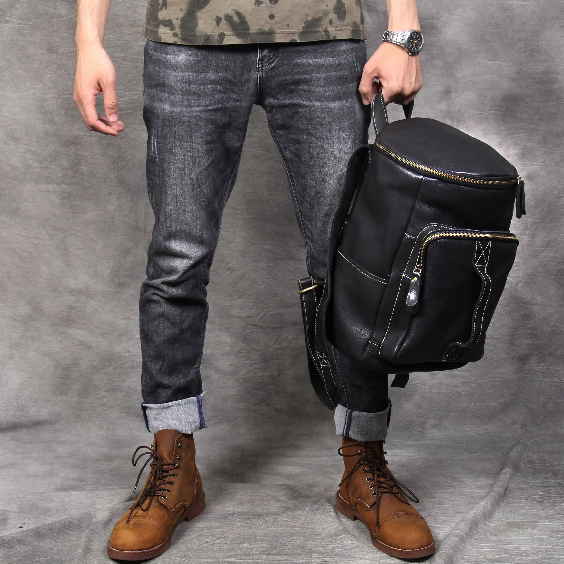 Home » backpack , hot product , travel » Cheap Vintage leather men's backpack laptop bag large capacity cowhide backpack male bucket bags travel b