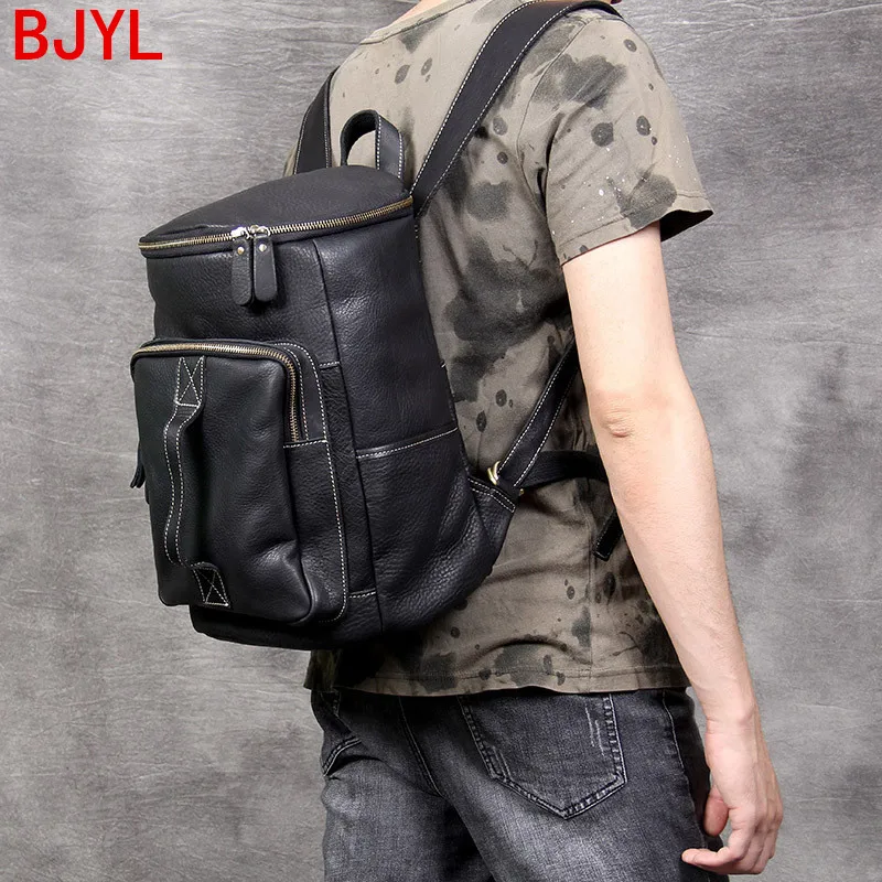 Special Vintage leather men's backpack laptop bag large capacity cowhide backpack male bucket bags travel b