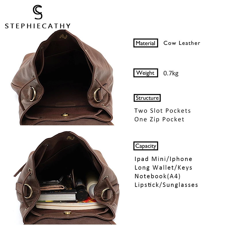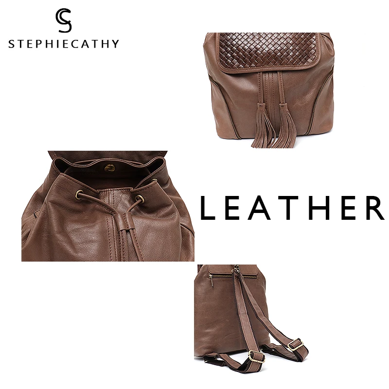 Home » backpack , hot product , travel » Limited SC Italian Leather Women Backpacks Vintage Tassel Flap Drawstring Large Shoulder Bag School Life Tr