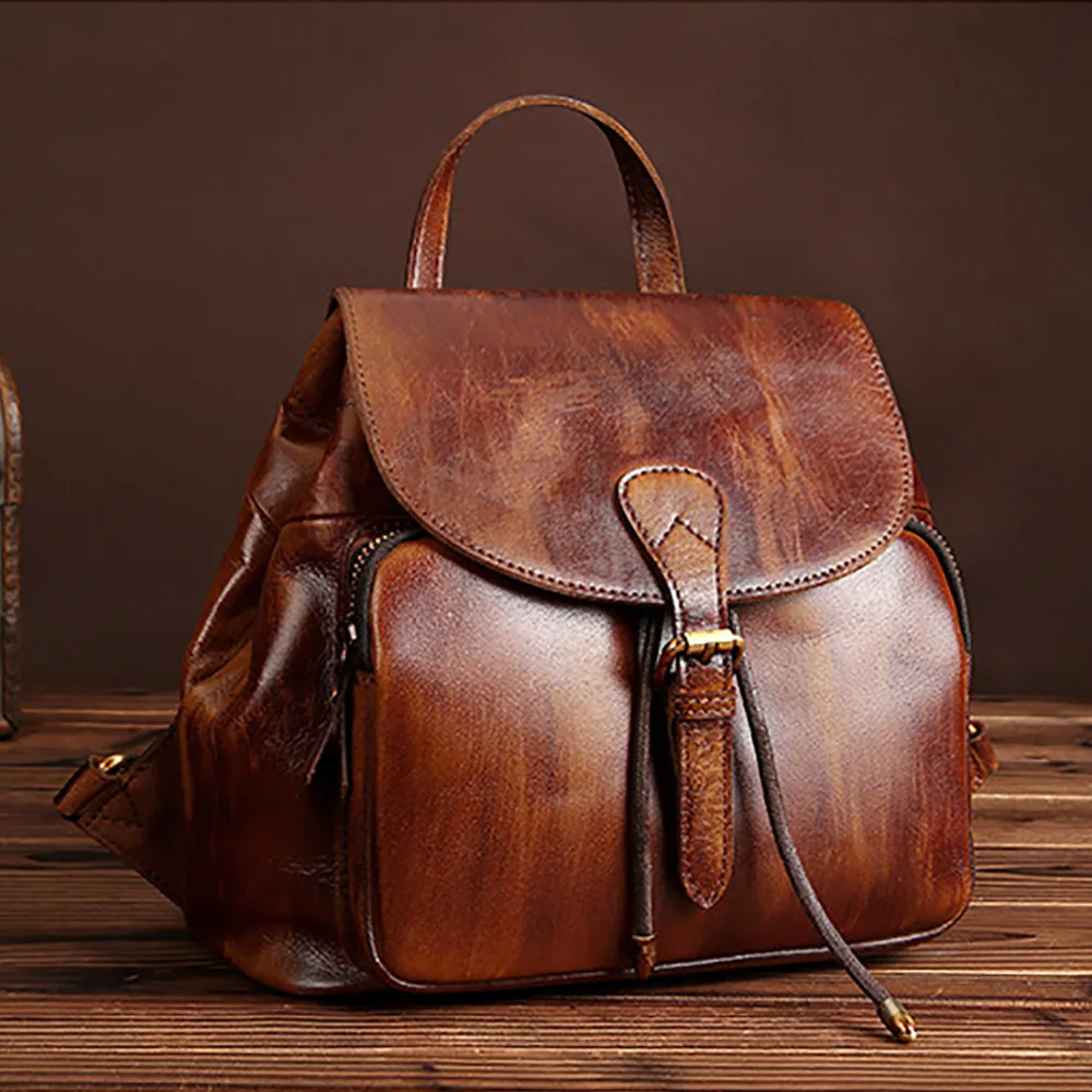 Promo Famous Designer Brand Genuine Leather Cowhide Women Rucksack Vintage Casual Girls Daypack School Bo