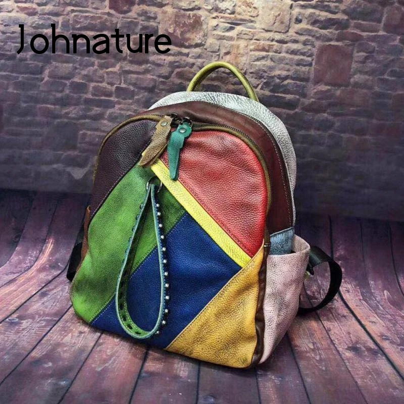 Discount Johnature Vintage Backpack 2019 New Hand-wiping Random Color Mixing Genuine Leather Women Shoulder