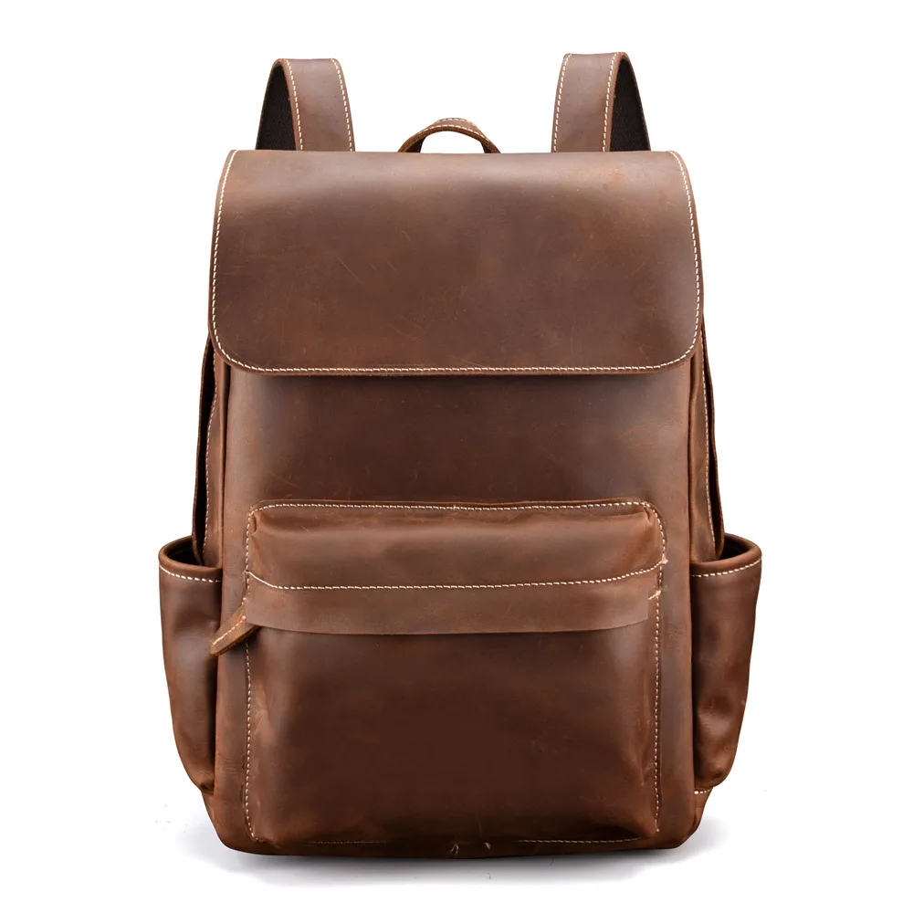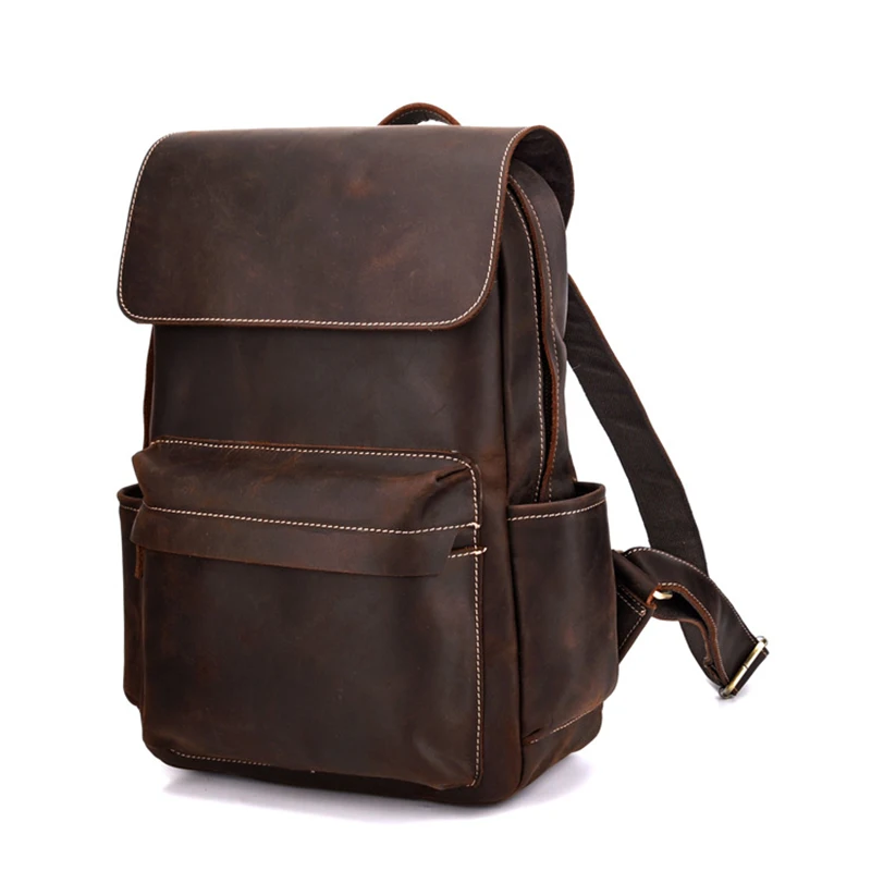 » Free Shipping High Quality Crazy Horse Cowhide Backpack School Daypack Large Capacity Laptop Bag Genuine Leather