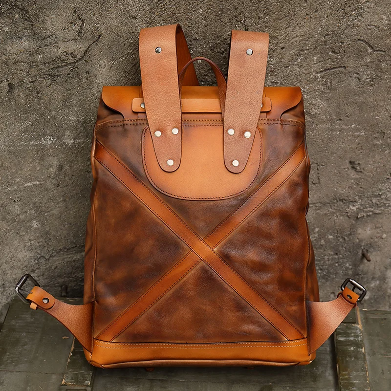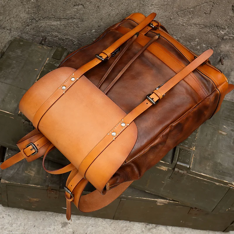 Get Men's Backpack Luxury Mens Cow Leather backpack Large Capacity Retro Shoulder Bag Military Style Tr