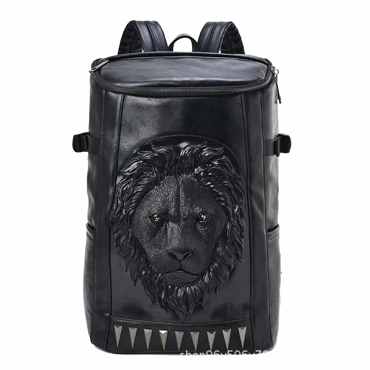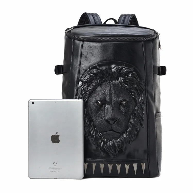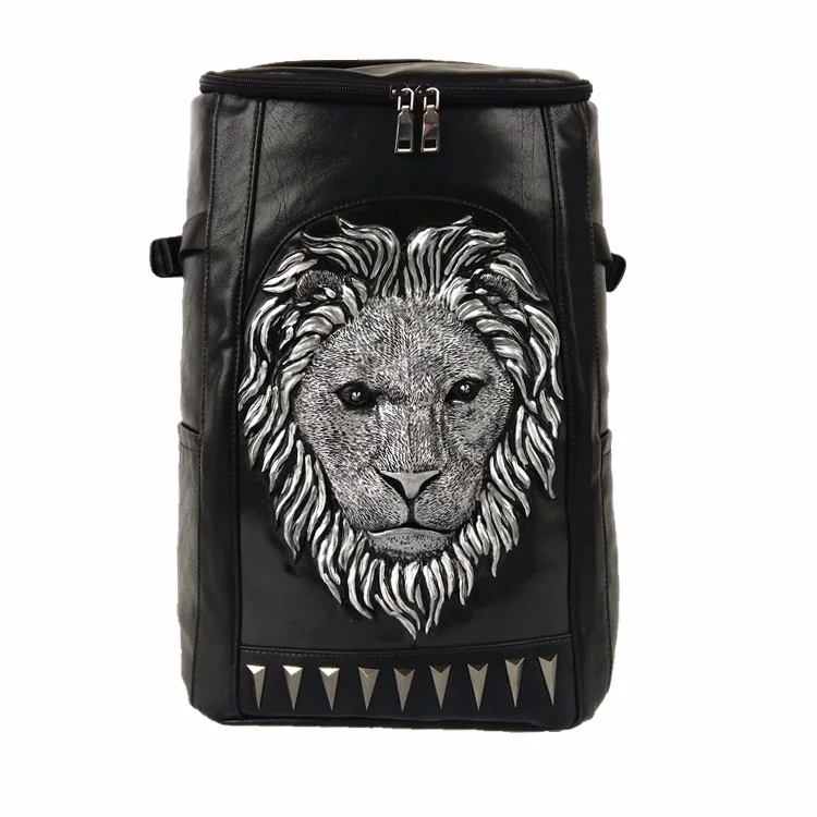 » Hot Product 3D Embossed Lion Head bucket Soft Backpack With Stunning Spikes Cool leather travel School bagpack