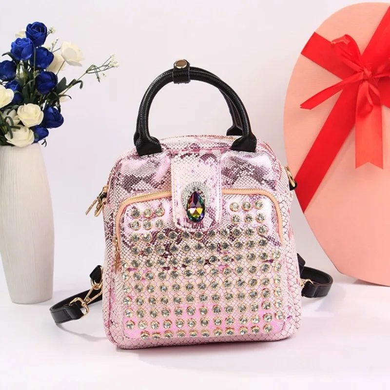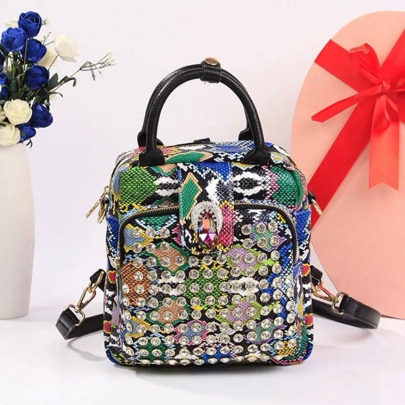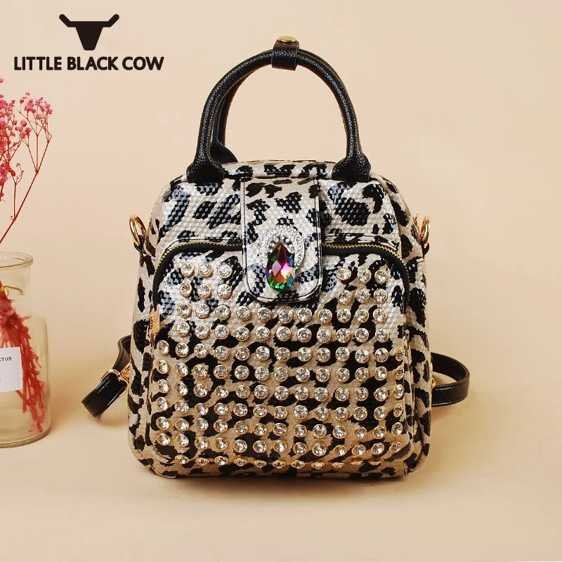 Special Fashion Diamond Crystal Backpack Female Brand Pu Leather Leopard Travel Laptop Backpack Multicolors