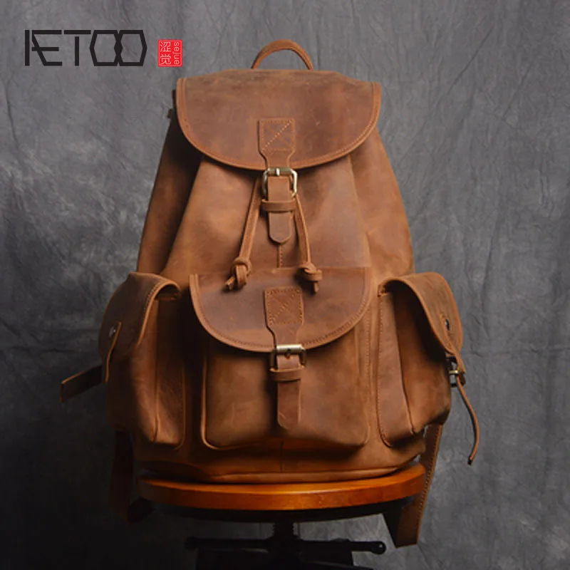 Home » backpack , hot product , travel » Special AETOO Retro Shoulder Bag Genuine Handmade Men Women Casual Travel Backpack Large Capacity First Lay