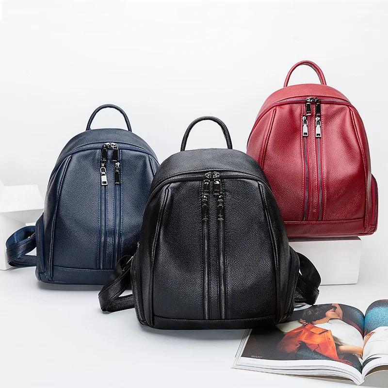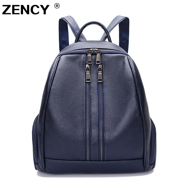 Cheap ZENCY 100% Genuine Leather Women Daily Backpack Real First Layer Cow Leather Ladies' Backpacks Trav
